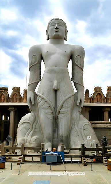 The Jain Architecture of South India solely belongs to the Dravidian style of architecture. The Colossus represents Gommateshwara, younger brother of Bharata, who, according to Jain mythology was the first man to attain salvation in the current Avasarpini era even before his father Shri Vrishabhadeva. The huge image stands majestically in almost perfect state of preservation. Its height is 58.8 ft.